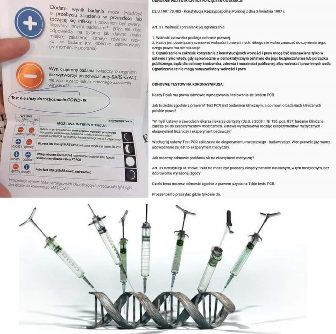 W skrócie: cała ta “pandemia” oparta jest na testach, które nie testują wiarygodnie obecności wirusa, tylko zestawy cząstek RNA, które znaleziono przy komórkach, przy których znaleziono wirusa. Jednak nigdy i nigdzie nie wykonano izolacji wirusa, czyli oczyszczenia go, aby mieć pewność, że testujemy tylko RNA wirusowe.