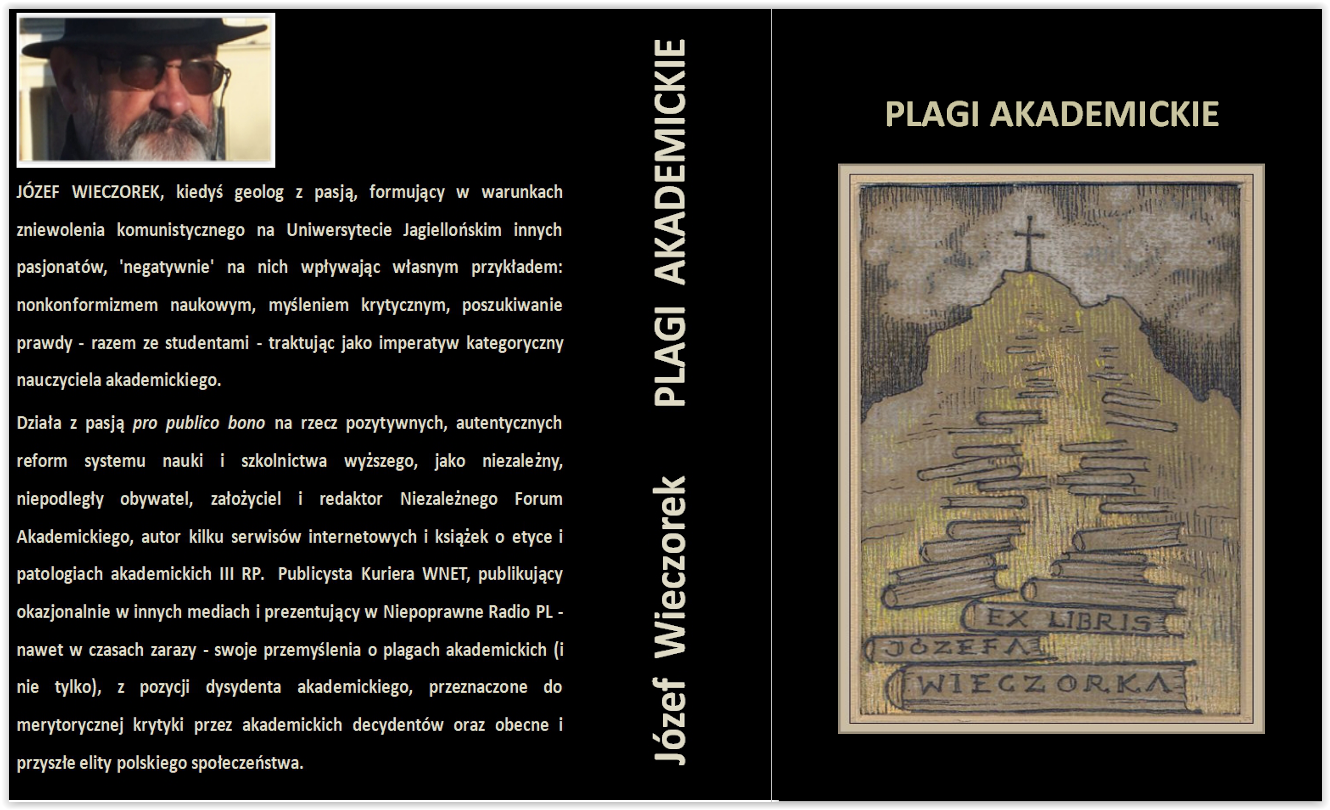 Ukazała się drukiem moja nowa książka PLAGI AKADEMICKIE [450 stron],w której zebrane są teksty z ostatnich kilku lat obrazujące moje boje z plagami akademickimi jakimi dotknięty jest polski świat akademicki funkcjonujący po pandemii komunizmu, aktualnie porażony pandemią biologiczną, która przyszła z kraju komunistycznego i stanowi zagrożenie dla wolności człowieka, z czym świat akademicki i przed tą pandemią miał już poważne problemy.