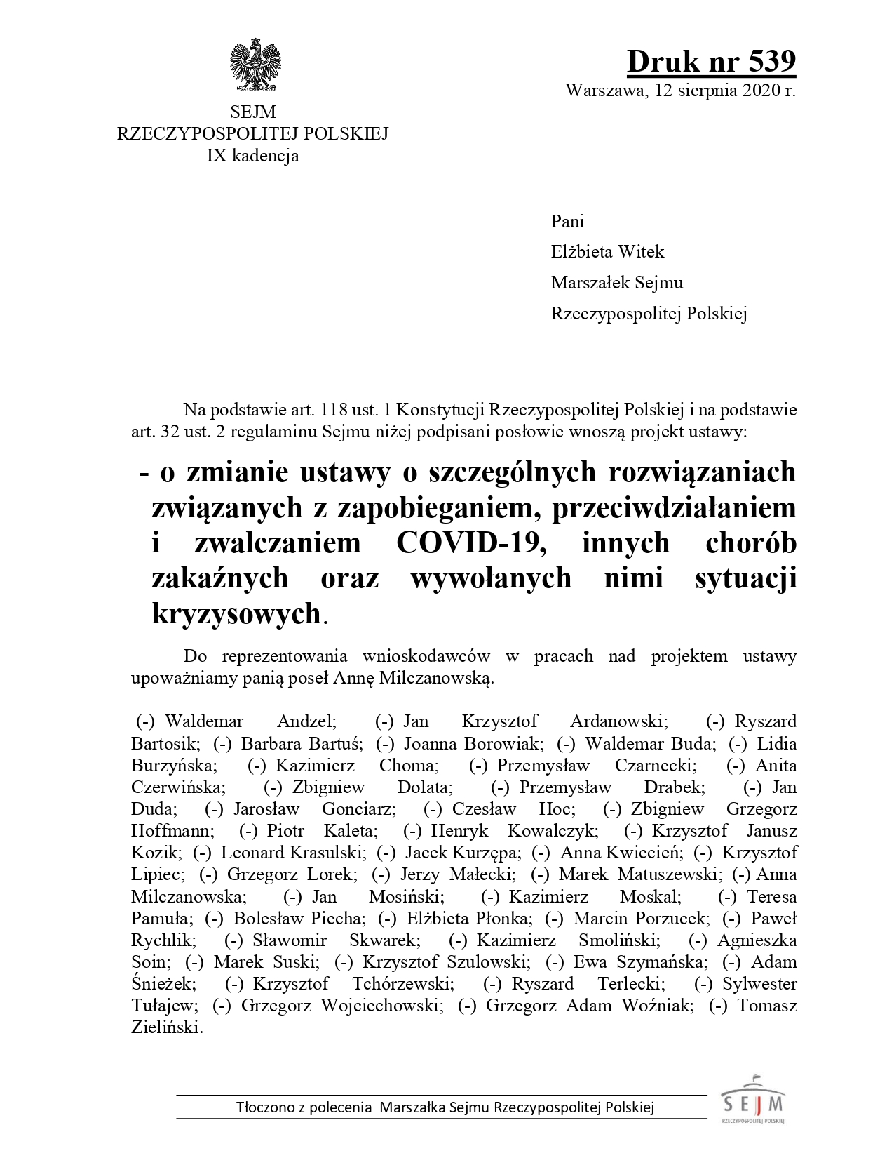 Rzeczona haniebna ustawa ma zostać więc jakby „przemycona” wśród ośmiu punktów programu posiedzenia, w formie jakiegoś niewinnego „Sprawozdania Komisji Finansów Publicznych o poselskim projekcie ustawy o zmianie ustawy o szczególnych rozwiązaniach związanych z zapobieganiem, przeciwdziałaniem i zwalczaniem COVID-19, innych chorób zakaźnych oraz wywołanych nimi sytuacji kryzysowych (druki nr 539 i 569) – sprawozdawca poseł Andrzej Szlachta”.
