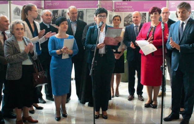 Z inicjatywy posłanki Lidii Burzyńskiej (w środku) w Sejmie otwarto wystawę poświęconą abp. Antoniemu Baraniakowi (14.09. 2017 r. )