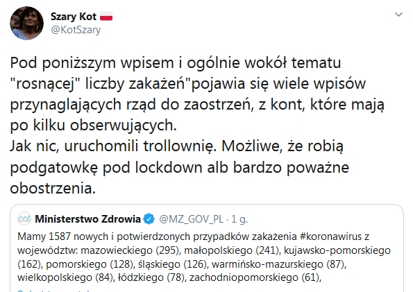 A przypominam, że jeszcze na dobre nie zaczęła się jesień i sezon grypowy. Nie muszę też dodawać ile osób wykończy się mentalnie. Już dzisiaj, jak się rozmawia z osobami starsze, da się wyczuć, że są śmiertelnie przerażone.