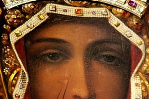 Matka Boża Częstochowska z kaplicy Najświętszego Sakramentu w Katedrze lubelskiej (fragment). Obraz ten płakał krwawymi łzami w lipcu 1949 r.