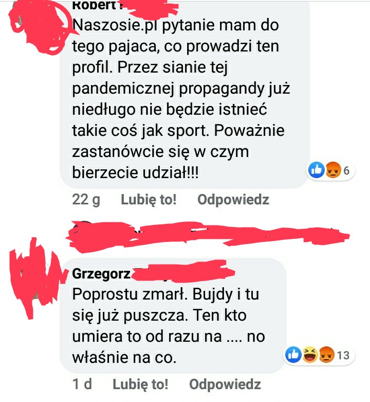 Żeby nie być gołosłownym, poniżej przedstawiam kilka internetowych wpisów. Tu akurat pod artykułem o śmierci na Covid byłego gwiazdora kolarstwa. Dodam, że wpisy w podobnym stylu, co poniższe stanowiły około 90% z puli wszystkich komentarzy.