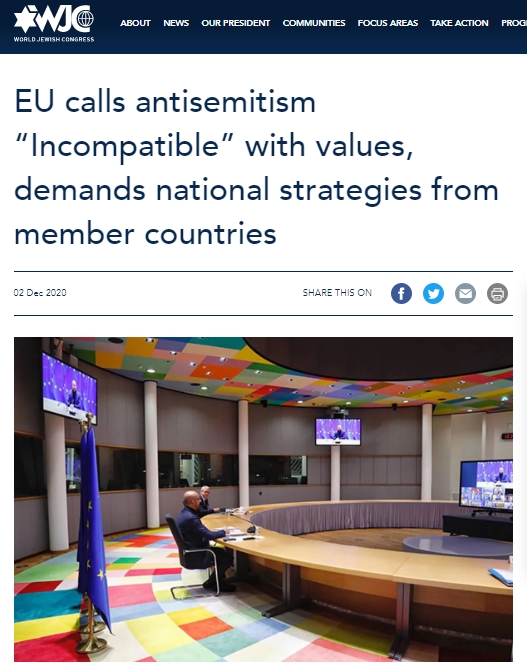 Tymczasem Światowy Kongres Żydów pochwalił deklarację tzw. Rady Unii Europejskiej dotyczącą uniwersalizacji walki z antysemityzmem jako