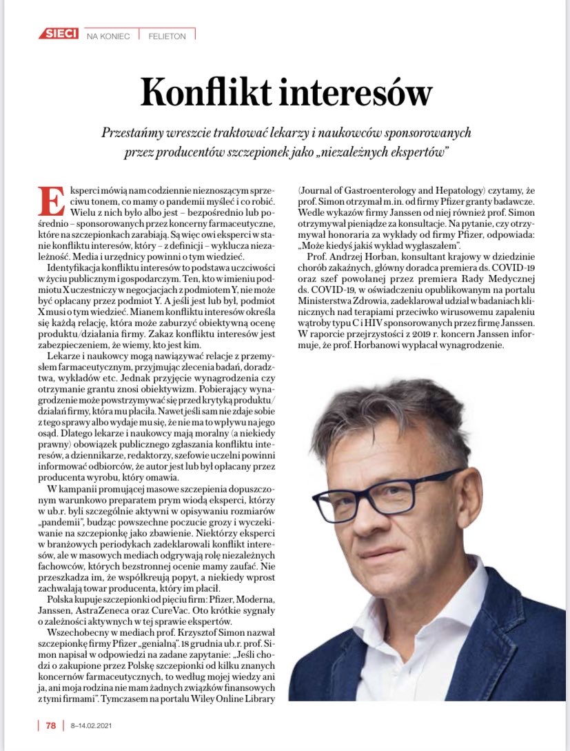„Odkąd Izrael rozpoczął szeroko zakrojoną kampanię szczepień w grudniu, państwo to doświadcza gwałtownego wzrostu liczby przypadków COVID-19 i zgonów… ortodoksyjne społeczności żydowskie, które były masowo szczepione, odnotowały wzrost liczby przypadków COVID 16-krotnie, podczas gdy izraelscy Arabowie, którzy gremialnie powstrzymywali się od szczepień, zanotowali gwałtowny spadek liczby przypadków COVID….
