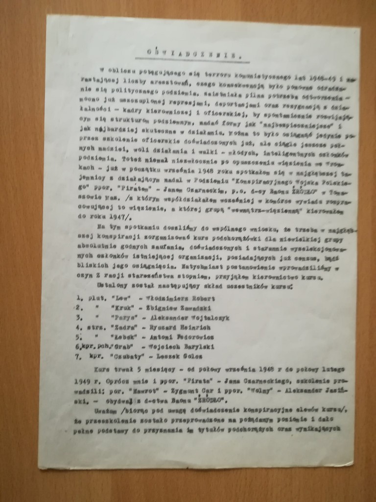 2. W załączonych dokumentach widnieje organizator Kursu i wykładowca, por. „Pirat” – Jan Marian Czarnecki.