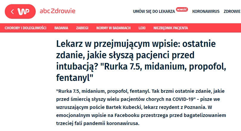 Mojego Tatę tez tak załatwili w szpitalu wojskowym we Wrocławiu- dostał te same leki, które podaje autor, wytrzymał 2 tygodnie po podłączeniu do respiratora- zaczęły siadać nerki, potem resztaJak zabierała go karetka to test na covid był negatywny, za 2 godziny w szpitalu pozytywny, po 4 dniach znowu negatywny, Jako przyczyna śmierci wpisali „wstrząs nieokreślony”, według mnie zmarł na sepsę, chociaż lekarka twierdzi ze nie. W dodatku o śmierci powiadomiono nas na drugi dzień, a tata zmarł dzień wcześniej o godzinie 14:10Niby nie mogli się dodzwonić. Żałuje bardzo, ze wezwaliśmy karetkę, ale niestety do przychodni od kilku dni nie można było się dostać, a saturacja zaczęła bardzo spadać Minęło 6 miesięcy a ja dalej nie mogę dojść do siebie