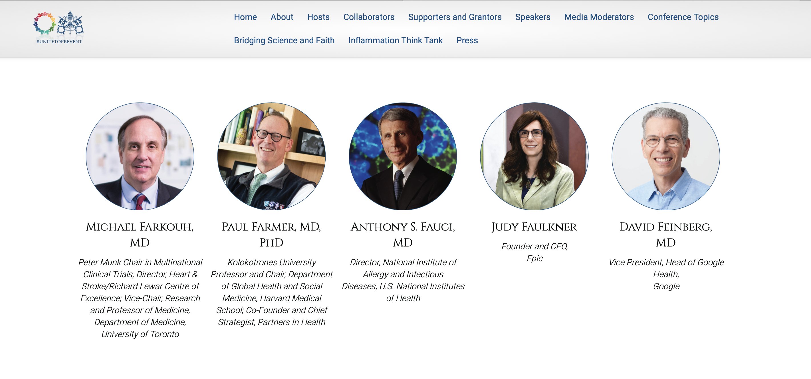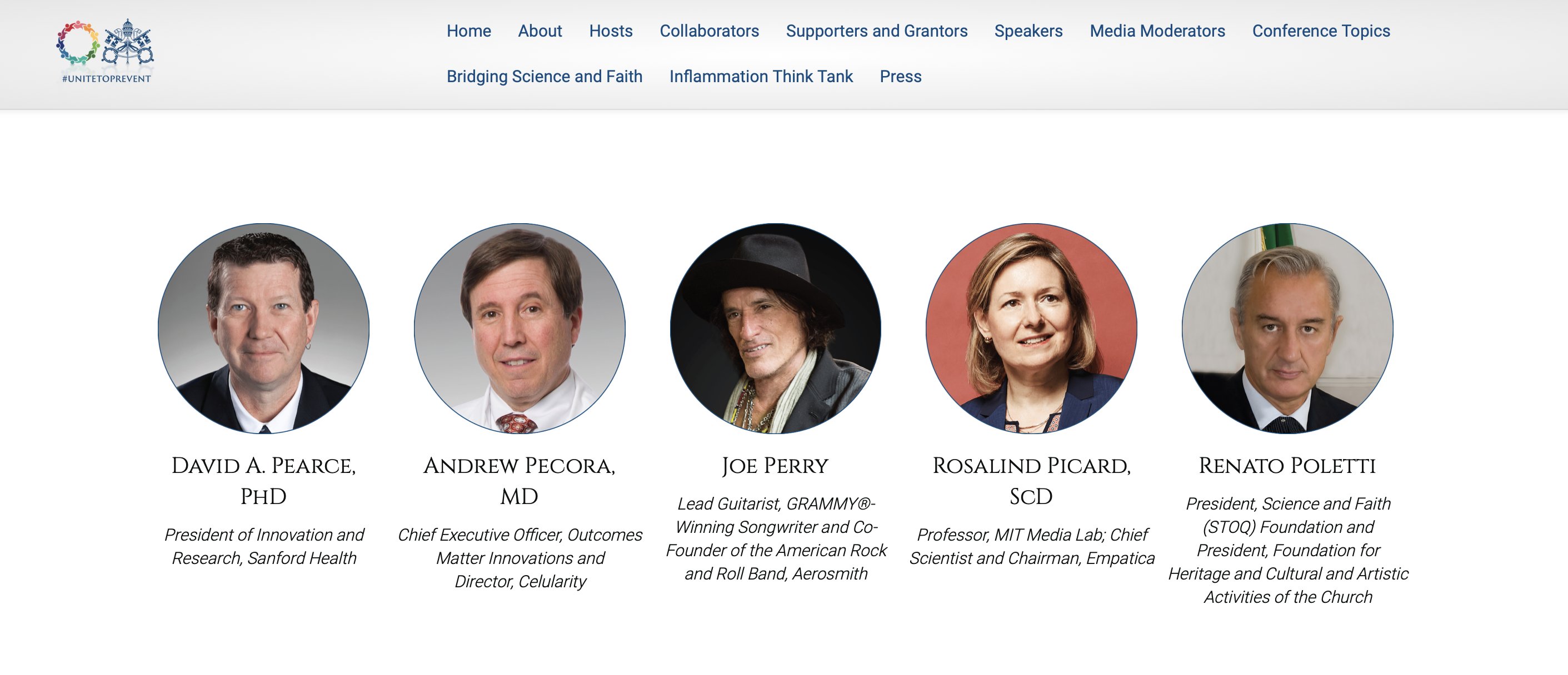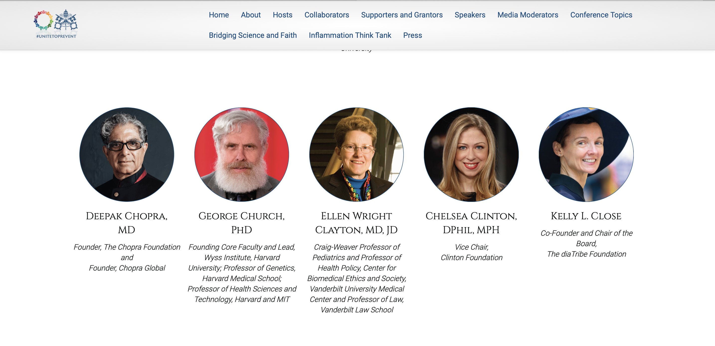 Wezmą w konferencji udział również prezesi dużych firm farmaceutycznych, w tym Moderna i Pfizer, a także znane osobistości działające w «filantropii medycznej, obrońcy zdrowia na świecie», decydenci polityczni, lekarze i przywódcy religijni. Na stronie internetowej watykańskiej konferencji wymieniono ponad 100 mówców, w tym Kerry Kennedy, modelkę Cindy Crawford, Johna Sculleya, Brandona Marshalla, Joe Perry’ego – gitarzystę zespołu muzycznego Aerosmith oraz monsignora Dario Edoardo Viganò, emerytowanego prefekta Sekretariatu ds. Komunikacji.