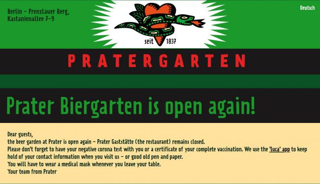 Oto ogłoszenie z witryny Prater, popularnego ogródka piwnego w Berlinie: