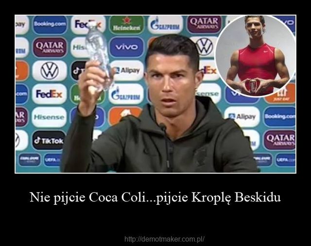 No dobra, wracając do “wywrotowego” czynu Ronaldo…otóż trzeba zapytać ile skasuje od koncernów za taką wrzutkę piłkarz Ronaldo? Straci Coca Cola, ale tak naprawdę zyska…moda na picie wody dla zdrowotności zbliża się i będzie promowana niedługo przez wszystkich cwelebrytów.