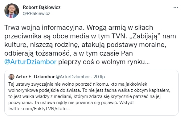 Tak więc mówienie o wolnym rynku, zwłaszcza w kontekście TVN-u, to kpina z rozumu.