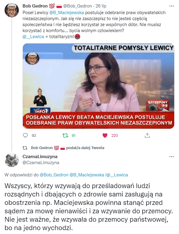 Informację na podstawie komunikatu PAP podała Gazeta Wyborcza, która reprezentuje środowiska popierające rasizm sanitarny.