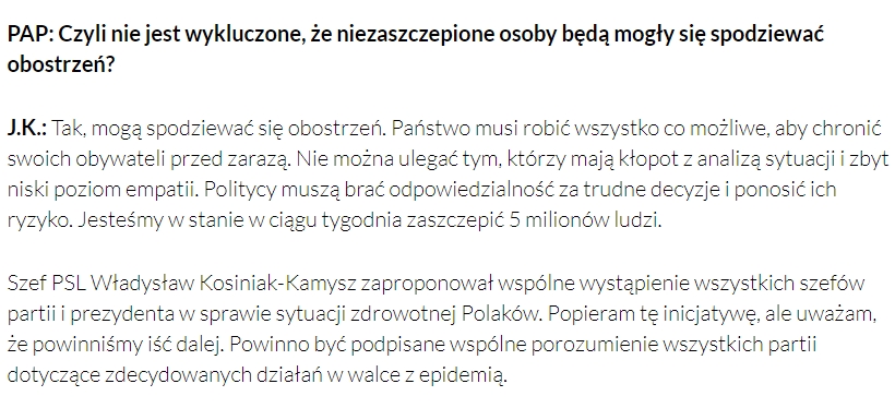 – oznajmił szef “zdradzieckich mord i najgorszego sortu” w rozmowie z PAP, zapowiadając nową ustawę umożliwiającą pociągnięcie do odpowiedzialności karnej “antyszczepionkowców”.