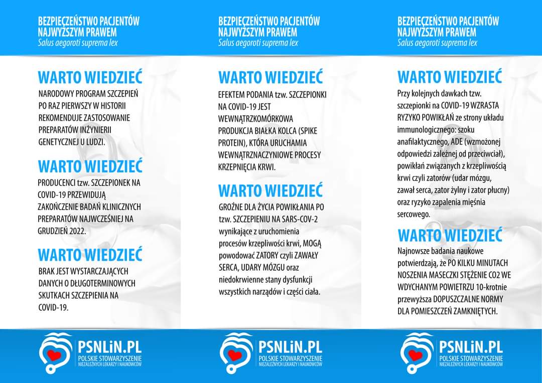 “Antyszczepionkowcy” jest określeniem propagandowym odnoszącym się do osób mających wiedzę medyczną i prezentujących racjonalne stanowisko wobec propagandy nowego totalitaryzmu sprzedawanego w mediach pod szyldem dbania o zdrowie. Są to racjonalni zwolennicy eliminacji wirusów, w tym covidowego za pomocą skutecznych preparatów. Zwolennicy leczenia. Są jednocześnie przeciwnikami eksperymentalnych szczepionek: toksycznych, okaleczających, zabijających, NIESKUTECZNYCH. Pod względem światopoglądowym są to środowiska antykomunistyczne, antyrasistowskie. Od kilku m-cy trwa kampania zniesławiająca w mediach, którą bez krzty przesady można określić kampanią nienawiści. Poniżej prezentuję ulotkę Polskiego Stowarzyszenia Niezależnych Lekarzy i Naukowców odkłamującą m.in. kwestię tzw. szczepionek na covid-19.