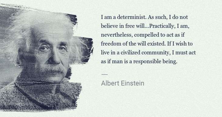 „Jestem deterministą. Jako taki nie wierzę w wolną wolę… W praktyce jednak jestem zmuszony działać tak, jakby wolna wola istniała. Jeśli chcę żyć w cywilizowanej społeczności, muszę zachowywać się tak, jakby człowiek był istotą odpowiedzialną”.