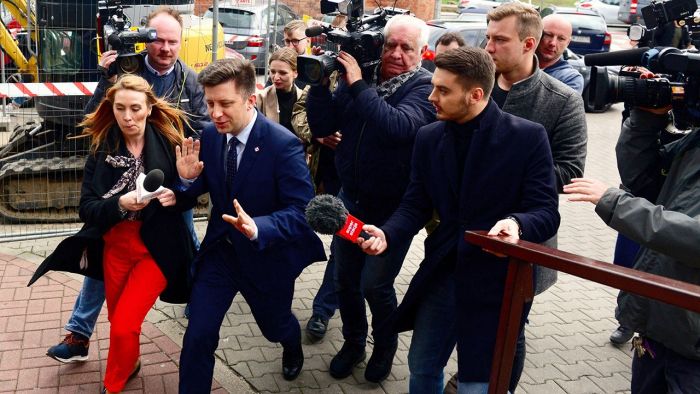 które to, w takim razie są te prawdziwe dokumenty, a które fałszywe i teraz się dzieje tak, że pytany na korytarzu Dworczyk, w drodze do zony zastrzeżonej przed dziennikarzami sp… rintem ucieka, co jest bardzo dobrze, bo jak się biega, to brzuch spada, a ministrowi ewidentnie mięsień piwny od tej służby dla dobra socjalistycznej Ojczyzny się pręży.