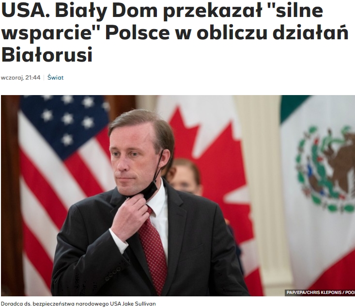 Wsparcie składało się z kilkudziesięciu słów jakie wypowiedział Doradca ds. bezpieczeństwa narodowego USA, Jake Sullivan. Zrobił to przez telefon.