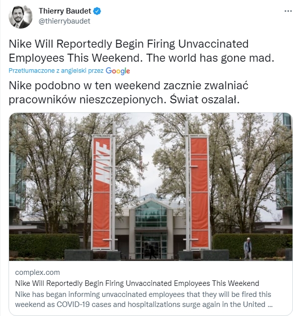 Raport Oregonian’s stwierdza, że grupa około 120 pracowników Nike zgłosiła swój sprzeciw wobec nakazów online, ale nie jest jasne, ilu z tej grupy jest w rzeczywistości nieszczepionych.