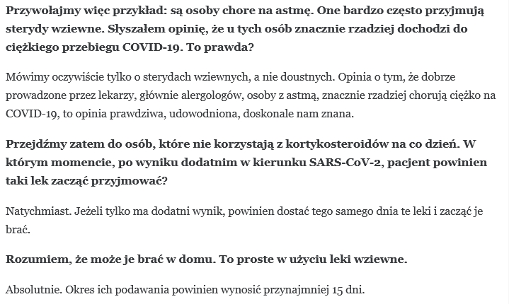 Wystarczy, że prof. Kuna w cytowanych przez największe portale wywiadach dla PAP, dla DoRzeczy i in. tłumaczy Decydentom (jest taki epitet)  jak krowie na rowie, że sterydy wziewne ratują zaatakowane Covidem płuca.