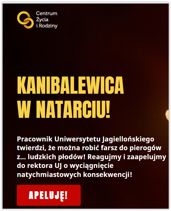 Podpisałem APEL DO REKTORA UNIWERSYTETU JAGIELLOŃSKIEGO przygotowany przez Centrum Życia i Rodziny [https://kanibalewica.pl/] mając przekonanie, że tak się dzieje, gdyż przez dziesiątki lat nie reagowano na „jagiellońską etykę”, stosowano cancel culture !