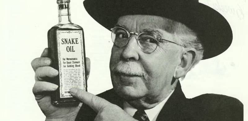 [W tekście występuje pojęcie snake oil (olej z węża), inaczej: cudowny lek, panaceum, lub jak kto woli – maść na szczury]