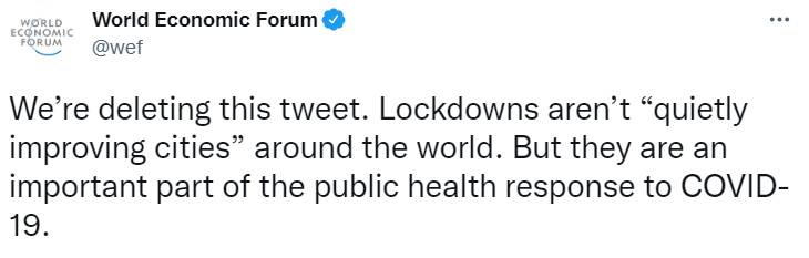 Jak widać, pomimo usunięcia wideo, WEF wciąż chwaliło lockdowny. To dlatego, że WEF chciałoby, aby życie „covidian” weszło na stałe.