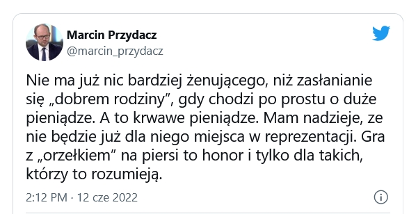 Jakaś pisowska wiernota (lubię ten neologizm swojego autorstwa) nazwiskiem Przydacz, czepia się Rybusa i coś o „krwawych pieniądzach” bredzi.