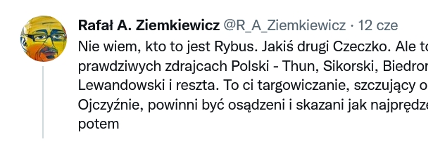 I nie kibicujcie temu dokopywaniu Rybusowi, bo te wszystkie cyngle, co się Rybusa dziś czepiają, jutro za Nowaka czy innego Kowalskiego się wezmą i kogo sobie tylko tymi kaprawymi oczkami wypatrzą.