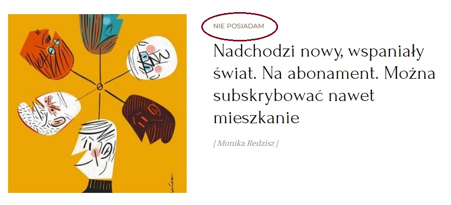 Dlatego coraz częściej nie chcemy posiadać. Ważniejsze staję się dla nas używanie, korzystanie, współdzielenie. Własność nie buduje już naszej wartości.