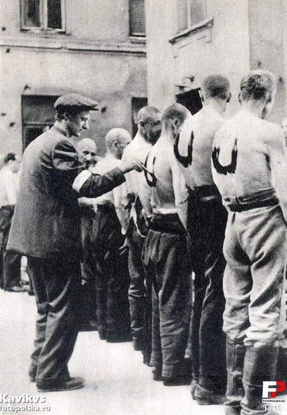 Ukraińscy ochotnicy walczący u boku Niemców i wzięci do niewoli przez powstańców podczas Powstania Warszawskiego.