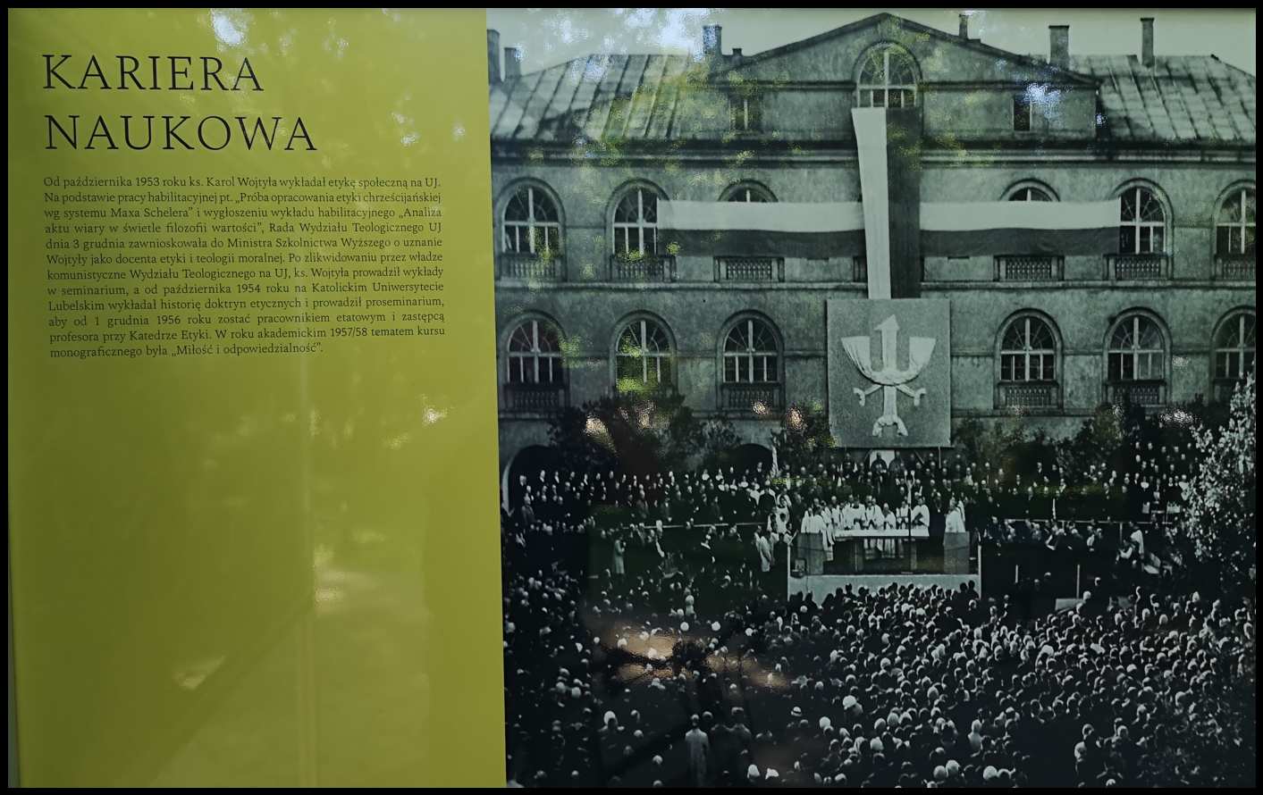 Na krakowskich Plantach można obejrzeć wystawę pt. „Jan Paweł II – Małopolanin wszech czasów”. Jedna z plansz przypomina, że Karol Wojtyła od 1953 roku wykładał etykę na UJ. Pozostawił po sobie kod etyczny nie do zaakceptowania w komunistycznej Polsce. Wydział Teologiczny UJ wkrótce zlikwidowano, niszcząc fundamenty, na których jagiellońska wszechnica była posadowiona od wieków.