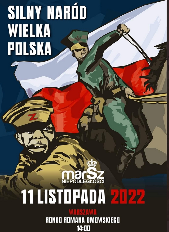 posługując się fałszerstwem plakatu z 1920 roku, który do wojny w Rosją nie wzywa, ale do wojny z żydo-bolszewią którą mamy po dziś dzień i to raczej w wydaniu amerykańskim w rodzaju pani Nuland czy gubernatorów miast ukraińskich usadowionych tam przez Usrael, niż w wydaniu Putina. Ale tego przekazu Robert Bąkiewicz nie ośmielił się zamieścić, zapewne z obawy przed mainstreamem. Wolał sfałszować historię. Nie przynosi mu to chwały.