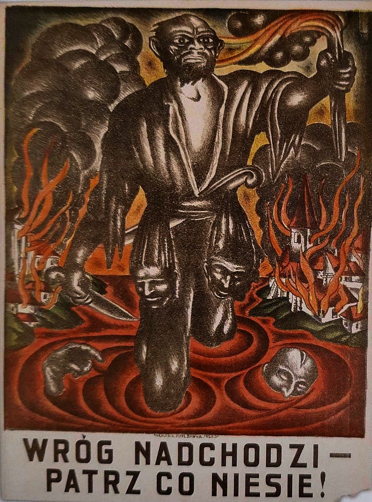 Jednak oryginalny plakat w 1920 r. nie ma wymowy antyrosyjskiej ale anty-żydo-bolszewicką, o czym świadczą karykaturalne rysy twarzy jegomościa, którego polski ułan tnie szablą po głowie. Nie jest to prostacki „zwykły rusek” ale demoniczny jewrej, niosący śmierć kulturze chrześcijańskiej i łacińskiej.