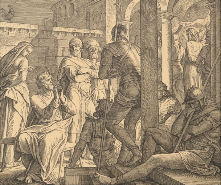 „Po chwili ci, którzy tam stali, zbliżyli się i rzekli do Piotra: Na pewno i ty jesteś jednym z nich, bo i twoja mowa cię zdradza. Wtedy począł się zaklinać i przysięgać: Nie znam tego Człowieka. I w tej chwili kogut zapiał. Wspomniał Piotr na słowo Jezusa, który mu powiedział: Zanim kogut zapieje, trzy razy się Mnie wyprzesz. Wyszedł na zewnątrz i gorzko zapłakał” (Mt 26, 73-75).