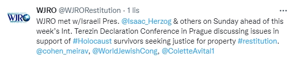 – powiedział sekretarz stanu USA, Antony Blinken /kresy.pl/ w przemówieniu skierowanym do uczestników drugiej konferencji na temat tzw. restytucji mienia żydowskiego w Terezinie w Republice Czeskiej.