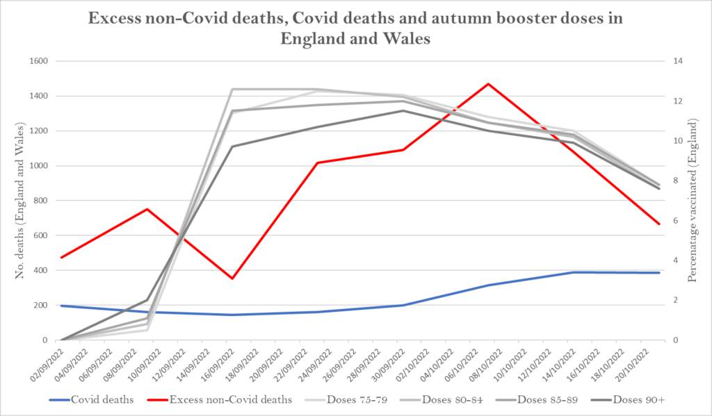 Uderzająca korelacja między jesiennymi dawkami przypominającymi szczepionki a nadmierną liczbą zgonów w Anglii, przy całkowitej nadwyżce zgonów niekowidowych przekraczającej 23 000