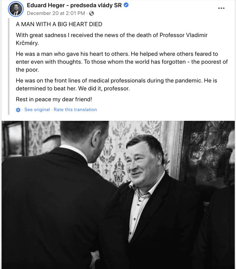 Słowacka iteracja dr Anthony’ego Fauci i głównego promotora szczepionki na Covid, doktora Vladimíra Krčméry’ego, nagle i zgodnie z oczekiwaniami zmarła. Krčméry był światowej sławy naukowcem, lekarzem i epidemiologiem. Dla wielu był znany jako najważniejszy epidemiolog na Słowacji i „covidowy wojownik” numer jeden w kraju.