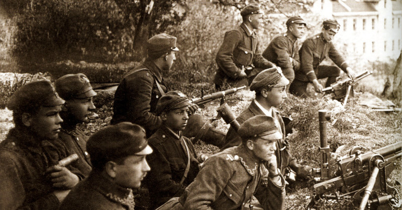 Niemiecki przyjaciel przestal się wtedy uśmiechać, otoczyl kilka wsi żelaznym pierścieniem i z karabinów maszynowych, na świadectwo wiernego przymierza, wystrzelal chlopów, baby i dzieci, spalil wszystko do cna i zadowolony patrzyl na efekt.