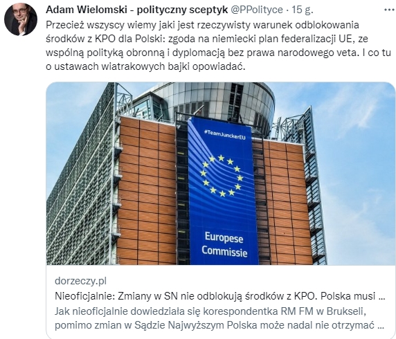 Przypominam, że kamieniem milowym na tej drodze była zgoda Morawieckiego na tzw. praworządność czyli wprowadzanie do polskiego prawa zapisów zaczerpniętych z ideologii marksistowskiej. Procesu tego mają pilnować odpowiednio wybrani,  mający unijną akceptację, sędziowie. W tym kontekście po raz kolejny pojawia się kwestia zarejestrowania Mateusza Morawieckiego w zasobach personalnych niemieckich służb ”Stasi”.
