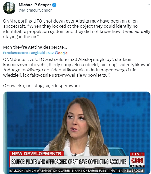 Talmudystom nie wychodzi.. Plandemia nie wypaliła jak chcieli – za niska depopulacja, a prawda się broni, wojna- chcieli jądrowej, zabijanie zwierząt hodowlanych- chcieli głodu. No to teraz UFO- będą siać strach. Chaos, chaos. Czas ich wsadzić do wariatkowa.