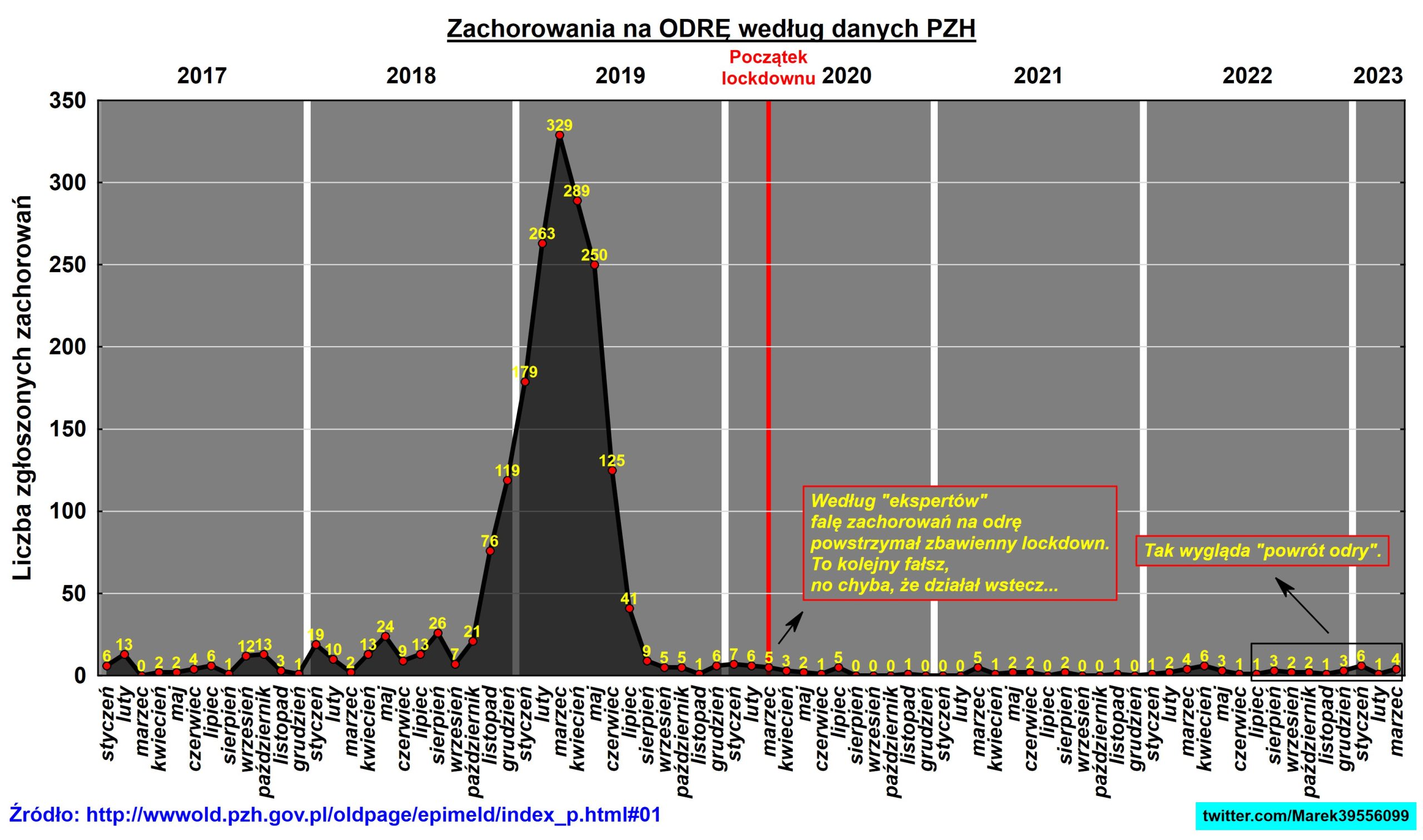 Eksperci ogłosili “powrót odry”. Szkoda, że dziennikarze nie weryfikują tych wypowiedzi… Absolutny hit to wypowiedź pewnego profesora, że spadek zachorowań w 2020 r. to wpływ lockdownu, który jak widać z wykresu musiał działał wstecz! Tak wygląda ekspercki “powrót odry”! Marek Sobolewski/TT
