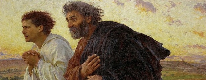 W pierwszy dzień tygodnia dwaj uczniowie Jezusa byli w drodze do wsi, zwanej Emaus, oddalonej o sześćdziesiąt stadiów od Jeruzalem. Rozmawiali oni z sobą o tym wszystkim, co się wydarzyło. Gdy tak rozmawiali i rozprawiali z sobą, sam Jezus przybliżył się i szedł z nimi. Lecz oczy ich były jakby przesłonięte, tak że Go nie poznali. On zaś ich zapytał: “Cóż to za rozmowy prowadzicie z sobą w drodze?” Zatrzymali się smutni. A jeden z nich, imieniem Kleofas, odpowiedział Mu: “Ty jesteś chyba jedynym z przebywających w Jerozolimie, który nie wie, co się tam w tych dniach stało”. Zapytał ich: “Cóż takiego?” Odpowiedzieli Mu: “To, co się stało z Jezusem Nazarejczykiem, który był prorokiem potężnym w czynie i słowie wobec Boga i całego ludu; jak arcykapłani i nasi przywódcy wydali Go na śmierć i ukrzyżowali. A my spodziewaliśmy się, że On właśnie miał wyzwolić Izraela. Ale po tym wszystkim dziś już trzeci dzień, jak się to stało. Nadto, jeszcze niektóre z naszych kobiet przeraziły nas: były rano u grobu, a nie znalazłszy Jego ciała, wróciły i opowiedziały, że miały widzenie aniołów, którzy zapewniają, iż On żyje. Poszli niektórzy z naszych do grobu i zastali wszystko tak, jak kobiety opowiadały, ale Jego nie widzieli”. Na to On rzekł do nich: “O, nierozumni, jak nieskore są wasze serca do wierzenia we wszystko, co powiedzieli prorocy! Czyż Mesjasz nie miał tego cierpieć, aby wejść do swej chwały?” I zaczynając od Mojżesza, poprzez wszystkich proroków, wykładał im, co we wszystkich Pismach odnosiło się do Niego. Tak przybliżyli się do wsi, do której zdążali, a On okazywał, jakby miał iść dalej. Lecz przymusili Go, mówiąc: “Zostań z nami, gdyż ma się ku wieczorowi i dzień się już nachylił”. Wszedł więc, aby zostać wraz z nimi. Gdy zajął z nimi miejsce u stołu, wziął chleb, odmówił błogosławieństwo, połamał go i dawał im. Wtedy otworzyły się im oczy i poznali Go, lecz On zniknął im z oczu. I mówili między sobą: “Czy serce nie pałało w nas, kiedy rozmawiał z nami w drodze i Pisma nam wyjaśniał?” W tej samej godzinie zabrali się i wrócili do Jeruzalem. Tam zastali zebranych Jedenastu, a z nimi innych, którzy im oznajmili: «Pan rzeczywiście zmartwychwstał i ukazał się Szymonowi”. Oni również opowiadali, co ich spotkało w drodze i jak Go poznali przy łamaniu chleba.