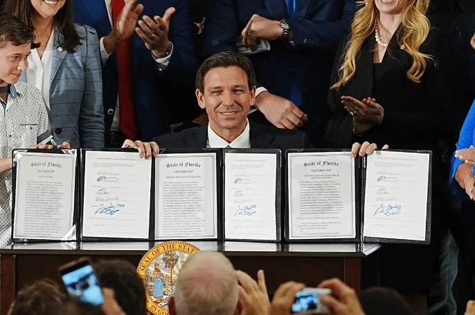 Gov. Ron DeSantis signs slew of “anti-crime” bills in Titusville, Fla., May 1, 2023. (Photo/Gov. Ron DeSantis’ office)