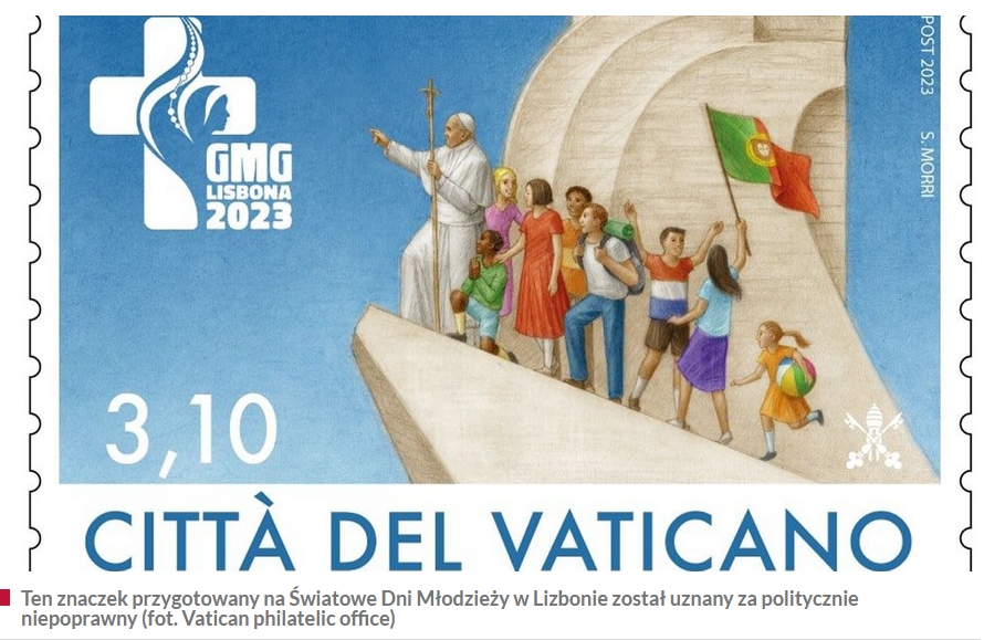 Watykan podjął decyzję o wycofaniu z obiegu znaczka pocztowego wyemitowanego 16 maja w związku ze Światowymi Dniami Młodzieży w Lizbonie w sierpniu. Jak podkreślają włoskie media, znaczek uznano za „politycznie niepoprawny”, bo nawiązuje do kolonialnej przeszłości Portugalii i przedstawia papieża Franciszka w geście “kolonizatora”, jak na lizbońskim Pomniku Odkrywców /tvp.info/