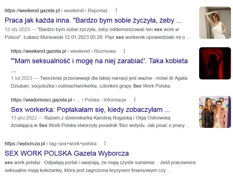 – mówi dr Agata Dziuban, socjolożka i outreachworkerka, członkini grupy Sex Work Polska. /Mam seksualność i mogę na niej zarabiać/ Gazeta Wyborcza/.