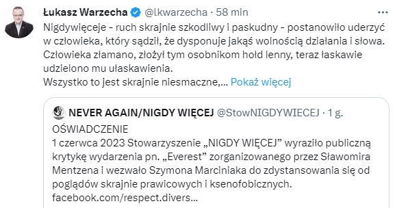 No niestety, oświadczenie pana Marciniaka w pełnym brzmieniu jest po prostu żenujące i wiernopoddańcze wobec politpoprawności. Człowiek został złamany. Przykre. Nie da się tego obronić. /Łukasz Warzecha/TT/ pełen tekst Oświadczenia/