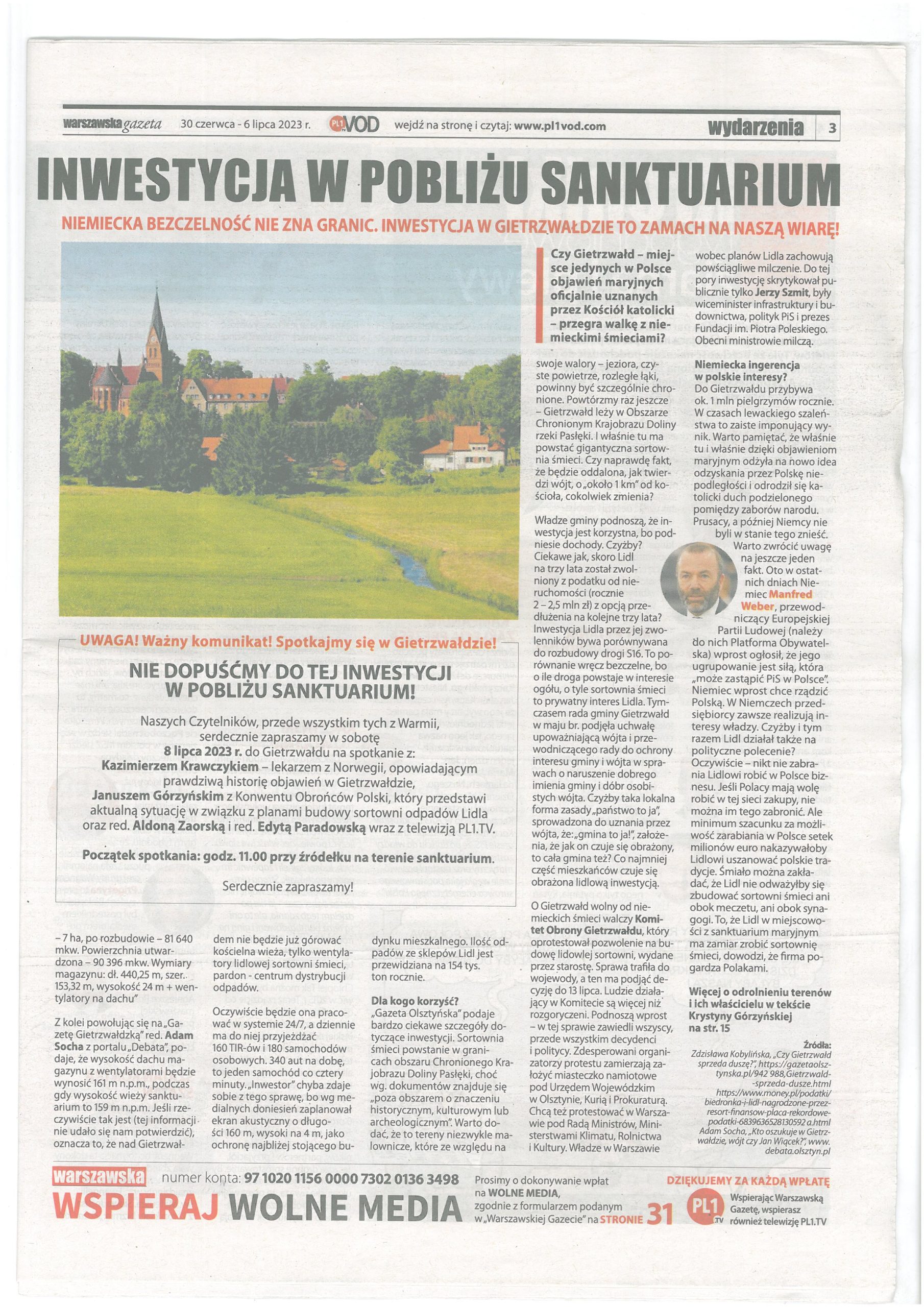 Więcej informacji w artykule red. Aldony Zaorskiej w „Warszawskiej Gazecie” z 30 czerwca.