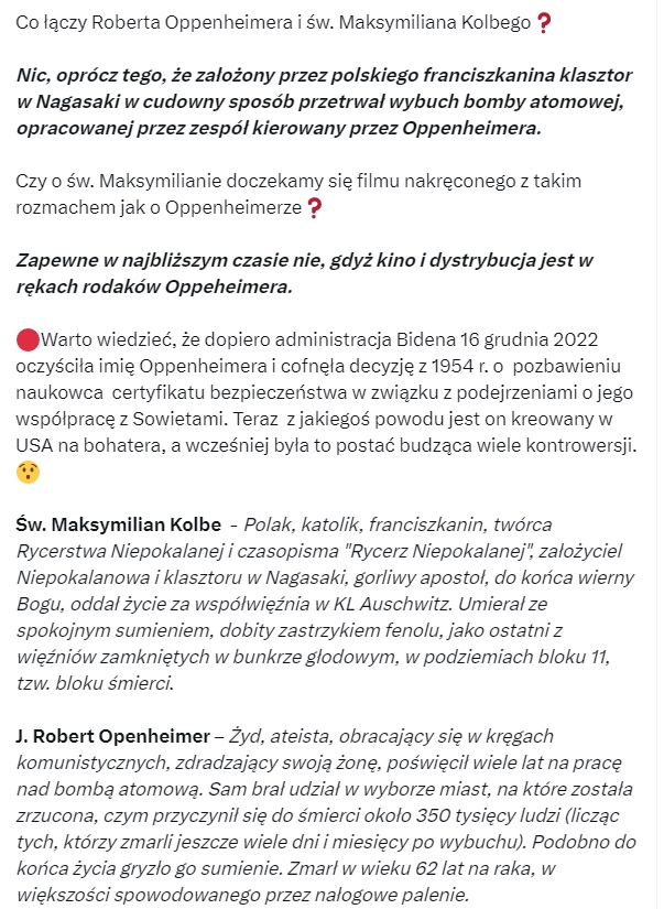 Co łączy Roberta Oppenheimera i św. Maksymiliana Kolbego?