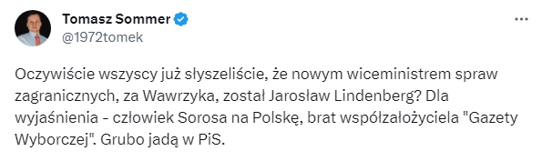 Byłem w początku lat 1990 na Łotwie i w Estonii i w środowisku polskich tzw. vipów politycznych którzy tam przyjechali na krótki pobyt, mielono to nazwisko (Jarosław był charge d’affairs organizujących się tam placówek dyplomatycznych). Mówiono o nim i jego bracie jako “zajadłych wrogach Michnika i gazwyb”. Zapewne tę opinię urabiano im na żydowskiej zasadzie “być za a nawet przeciw” , bo Lindenbergi przewidywane były do innego rozdania. No i mamy.