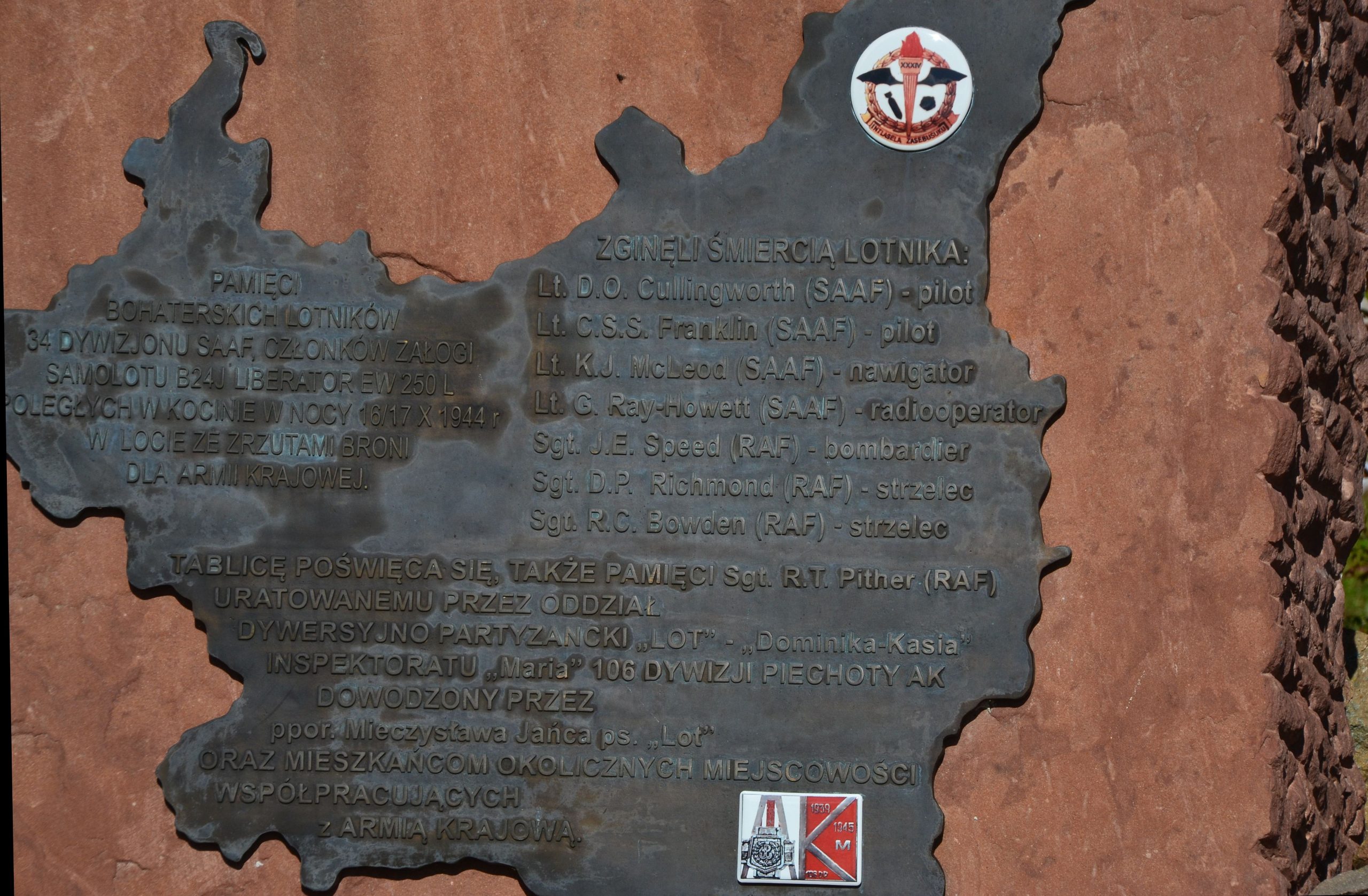 Pamięć o lotnikach poległych w katastrofie Liberatora SAAF/RAF w Kocinie.